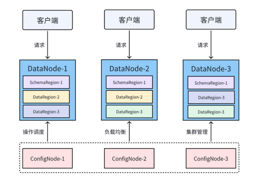 下图展示了一个常见的 IoTDB 3C3D(3 个 ConfigNode、3 个 DataNode)的集群部署模式: