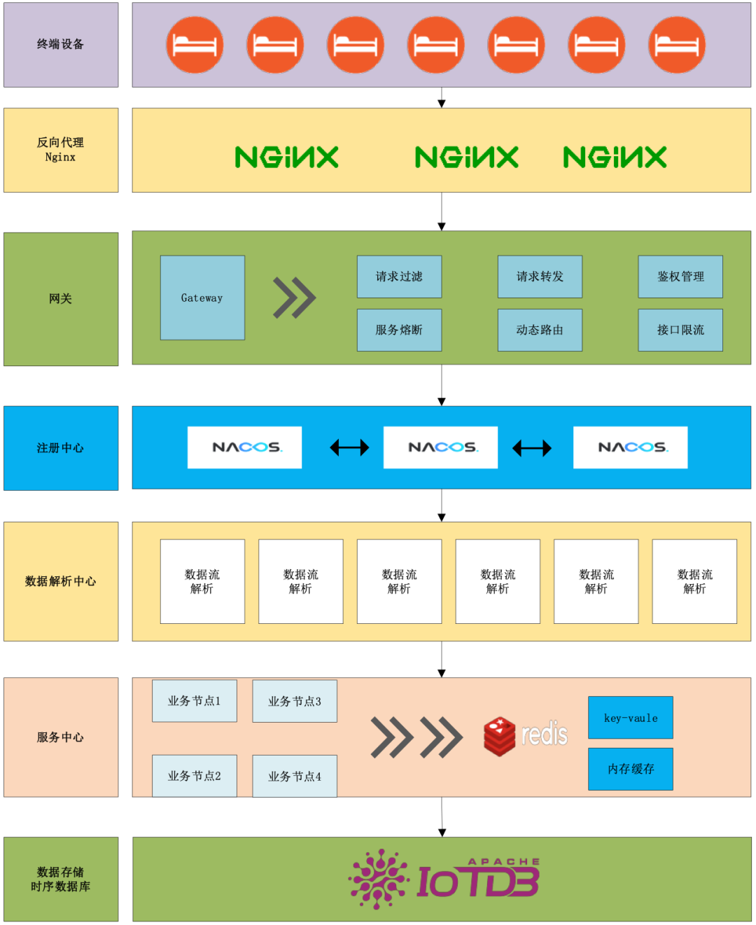 智慧健康养老服务管理系统物联网数据采用 IoTDB 时序数据库,对生产过程中产生的全量数据进行存储和计算。
